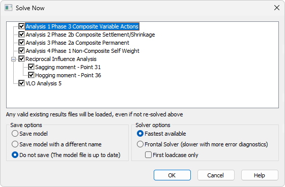 Include the following specialised analyses in an analysis branch. When done, they will inherit all attribute assignments from the parent loadcase: