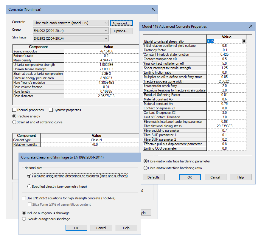 - The model can be combined with the creep and shrinkage behaviour appropriate to any of the supported Codes of Practice, resulting in a comprehensive time-dependent behaviour including cracking and crushing.