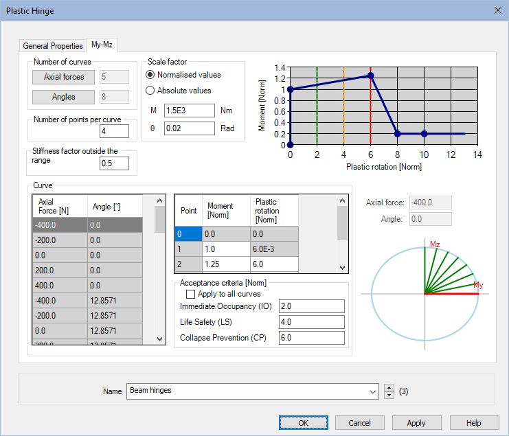 - For other materials, such as reinforced concrete, you can manually input the moment–rotation data.