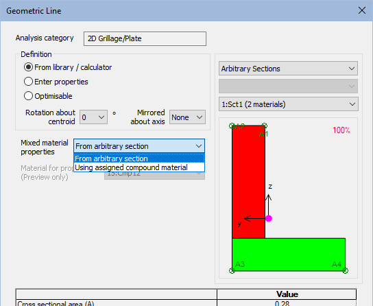 Take your section analysis to the next level with enhanced Mixed Material Modelling. For arbitrary sections, section properties can now be automatically calculated at tabulation time using the Arbitrary Section Material Attribute, seamlessly combining material and geometric data.